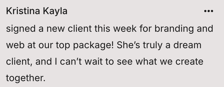 It's helped me rework how I do my business and re evaluate my pricing which has been a big deal for me. And today I officially landed my biggest client so far!! I told her my new pricing (I was so nervous) and she signed up with no hesitation!